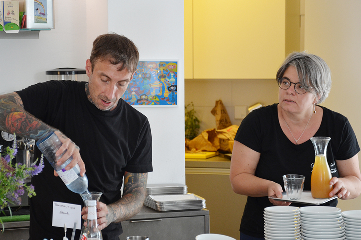 Zu Mittag traf die Gruppe wieder am Pfarrplatz ein, wo es im Café Viele Leute ein köstliches Erdäpfelgulasch und frische Semmerl gab. Bei einigen der Radteams wurde in der Mittagspause die Besetzung gewechselt, andere waren auch am Nachmittag noch mit von der Partie.