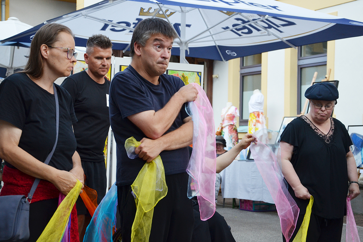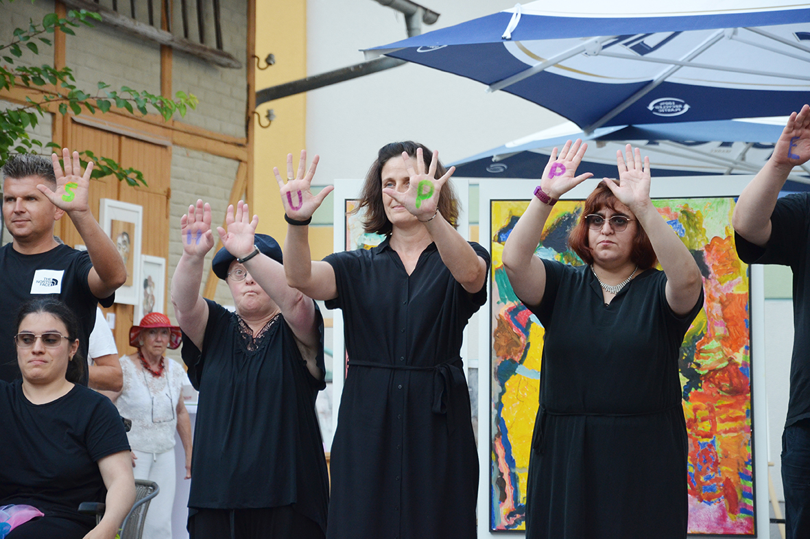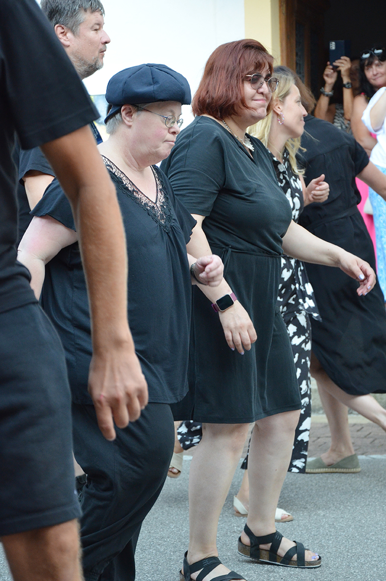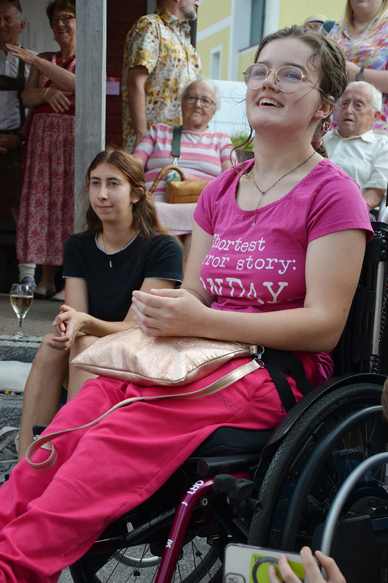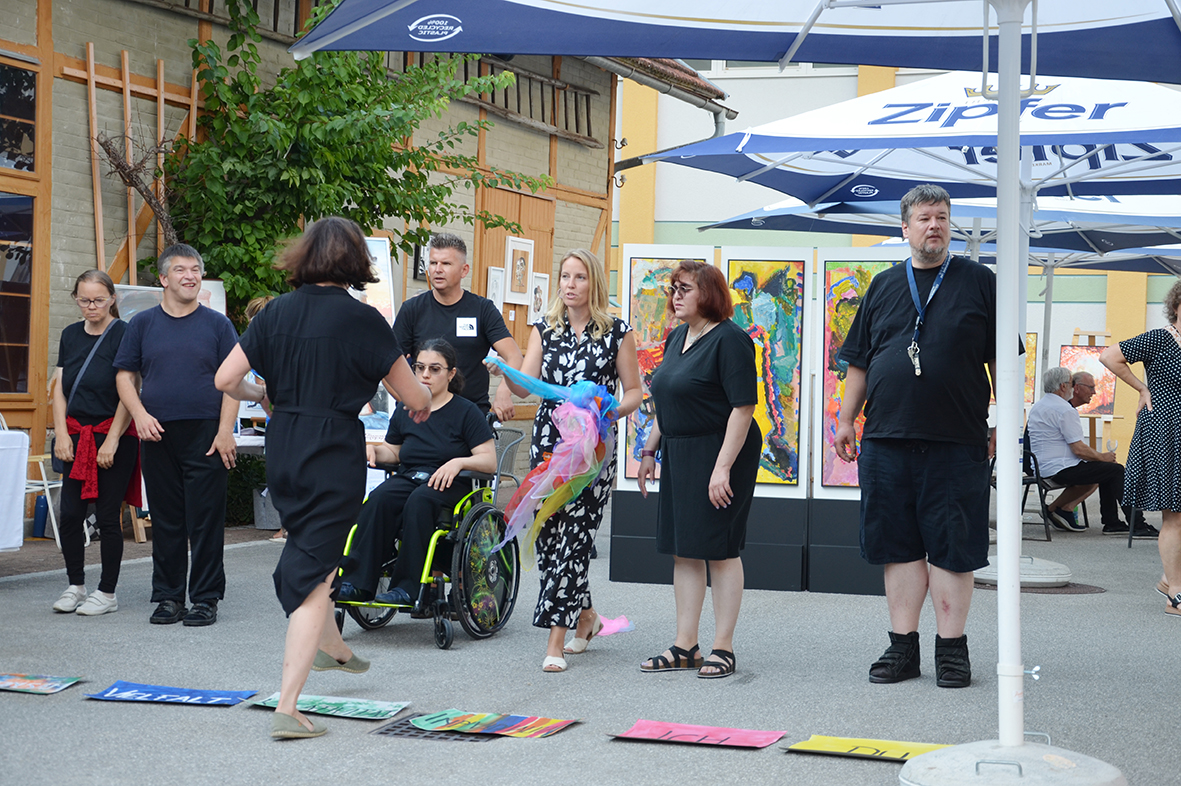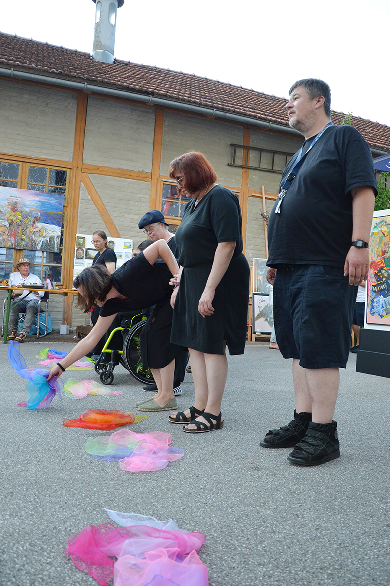 Beim dritten, von der Künstlerin Karoline Kornek initiierten Künstler*innenfest beim Lokschuppm in Klaus, trat vergangene Woche die seit kurzem in Schön bestehende Tanzgruppe „TanzVielfalt“ auf. Betreuerin Bettina Renz hatte mit unseren Kund:innen einen beeindruckenden Tanz einstudiert. Unterstützt wurde sie dabei auch von ihrem Kollegen Matúš Luckeneder aus der Fähigkeitsorientierten Aktivität und der agogischen Leiterin von Schön, Julia Hackl.