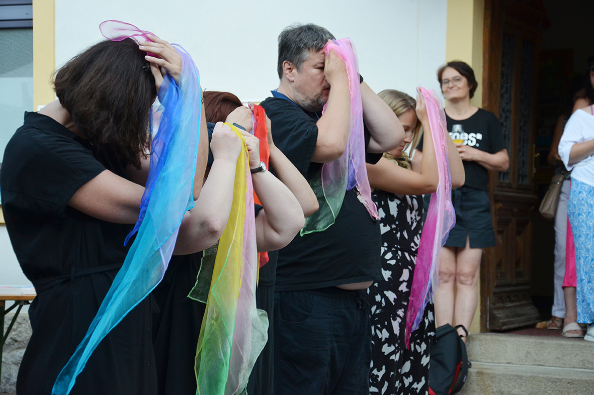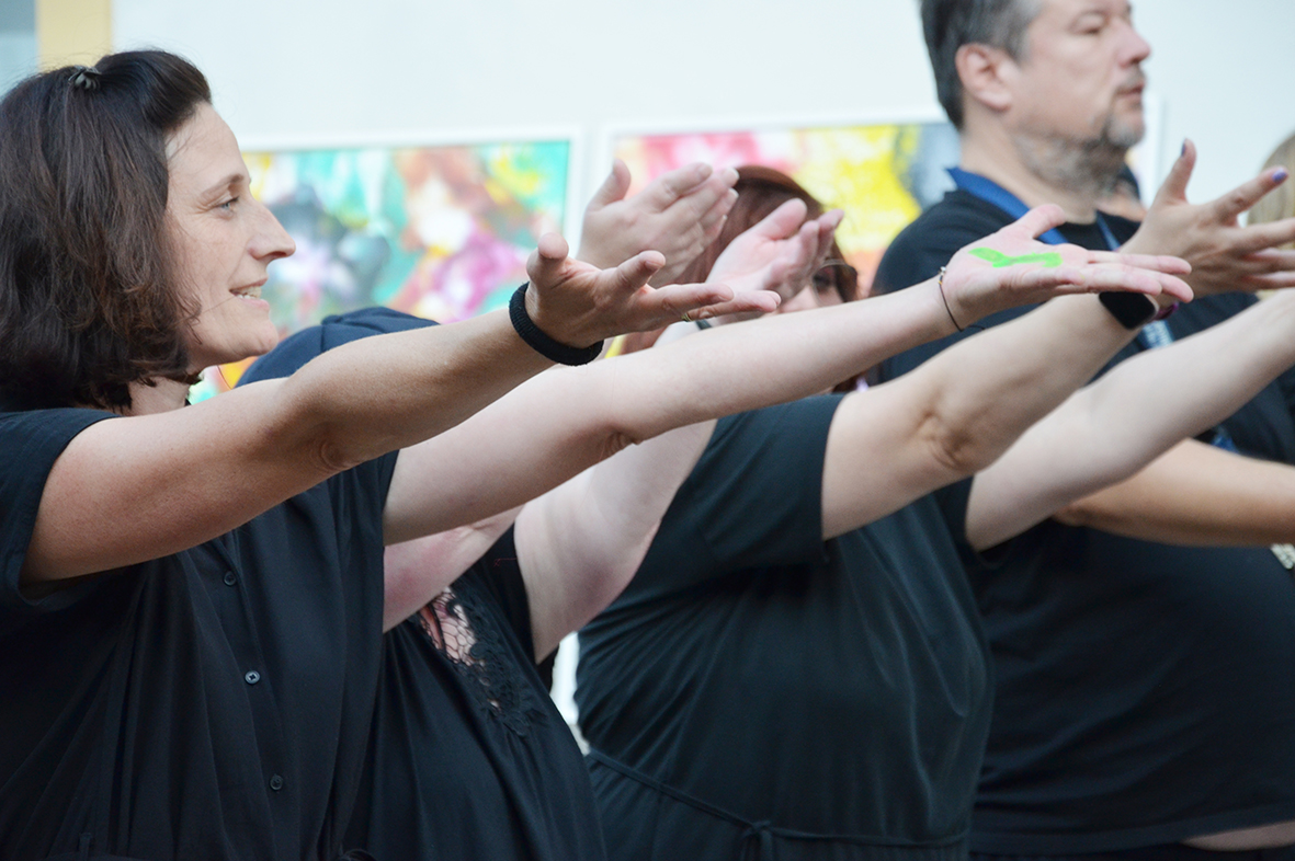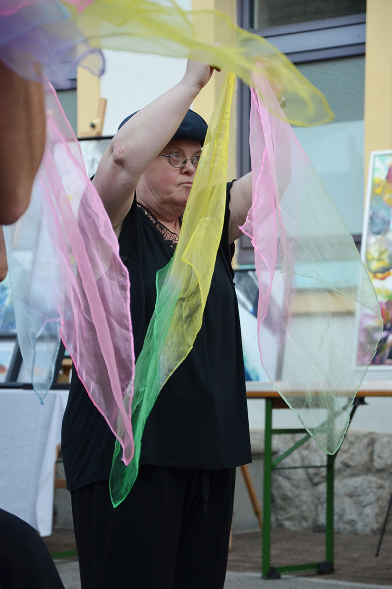 Im Tanz wurde die Entwicklung vom einzelnen, oft nicht beachteten Individuum hin zu einer gemeinsam gelebten Vielfalt nachempfunden, die durch eine immer stärker werdende Impulsivität und Freude ihren Ausdruck fand. Welche Freude Menschen gemeinsam mit Kreativität, Individualität und gleichzeitig Vielfalt erreichen und erleben können, war vor allem im Schlussbild zu sehen. Wir geben hier einen Einblick in den Tanz, der von den Ausführenden mit großer Konzentration ausgeführt wurde. Danach wurde gemeinsam der Erfolg gefeiert und der Nachmittag in Schön konnte bei bester Stimmung ausklingen.