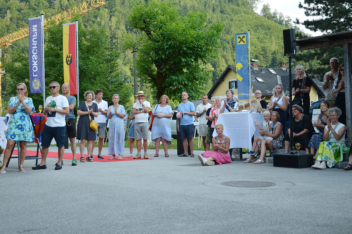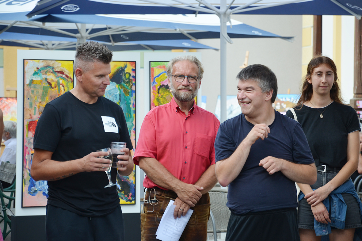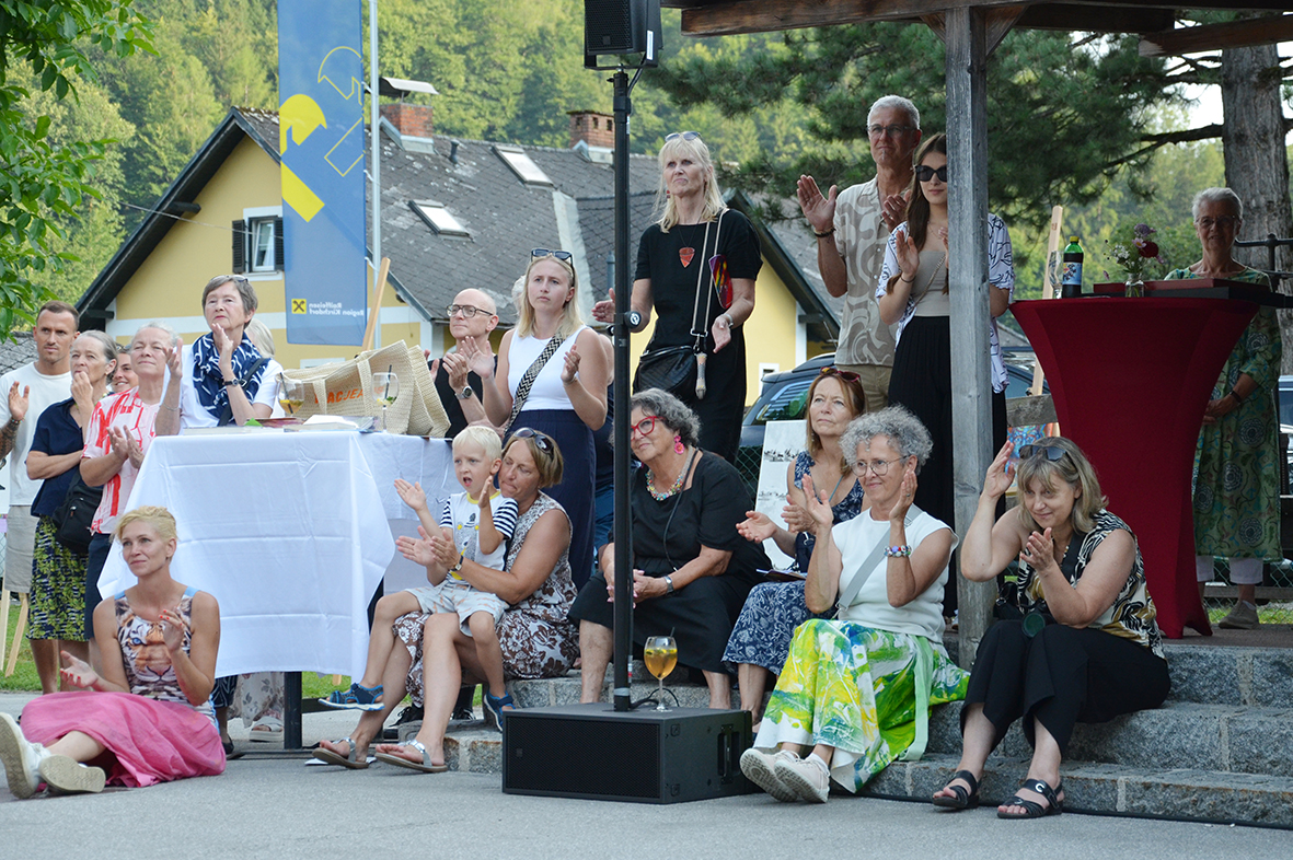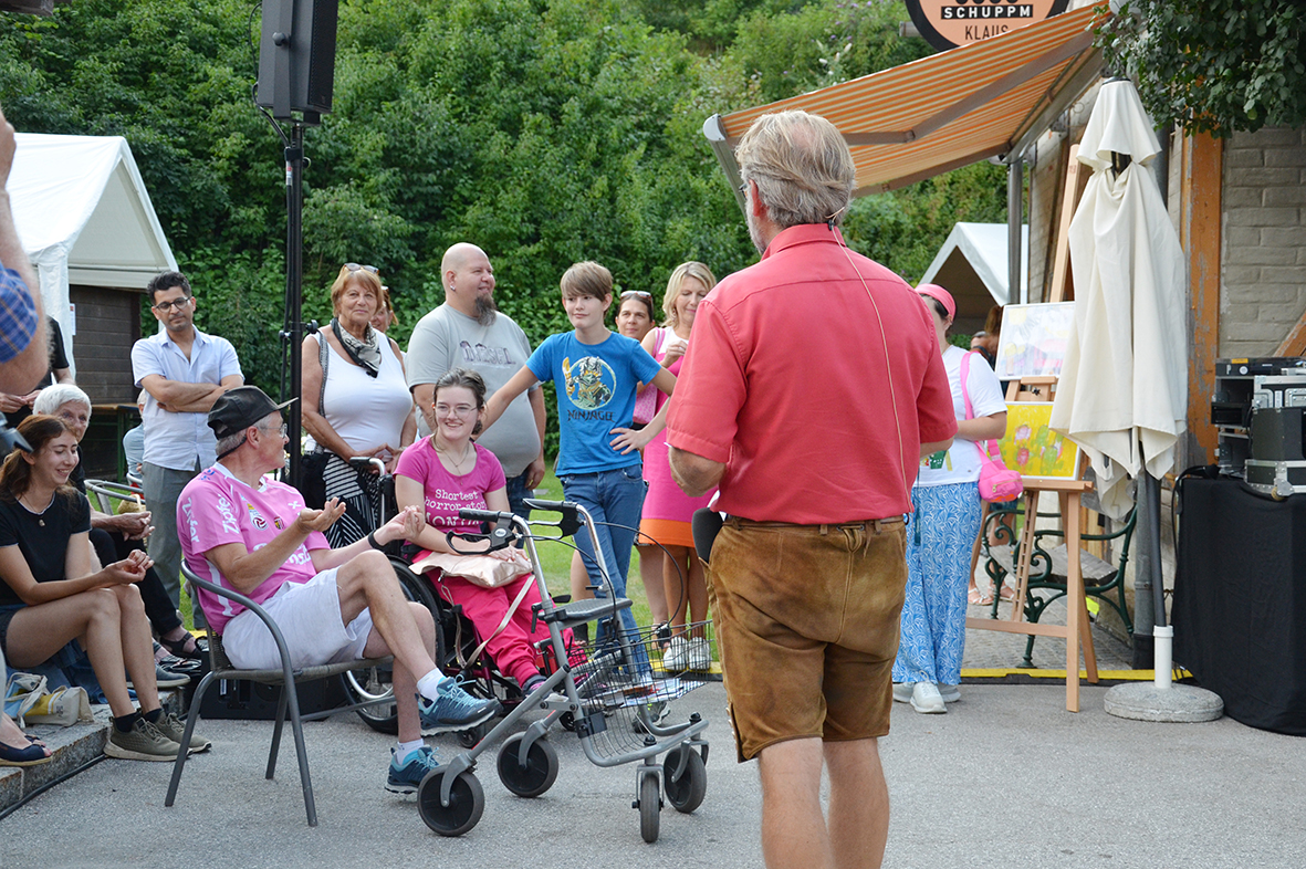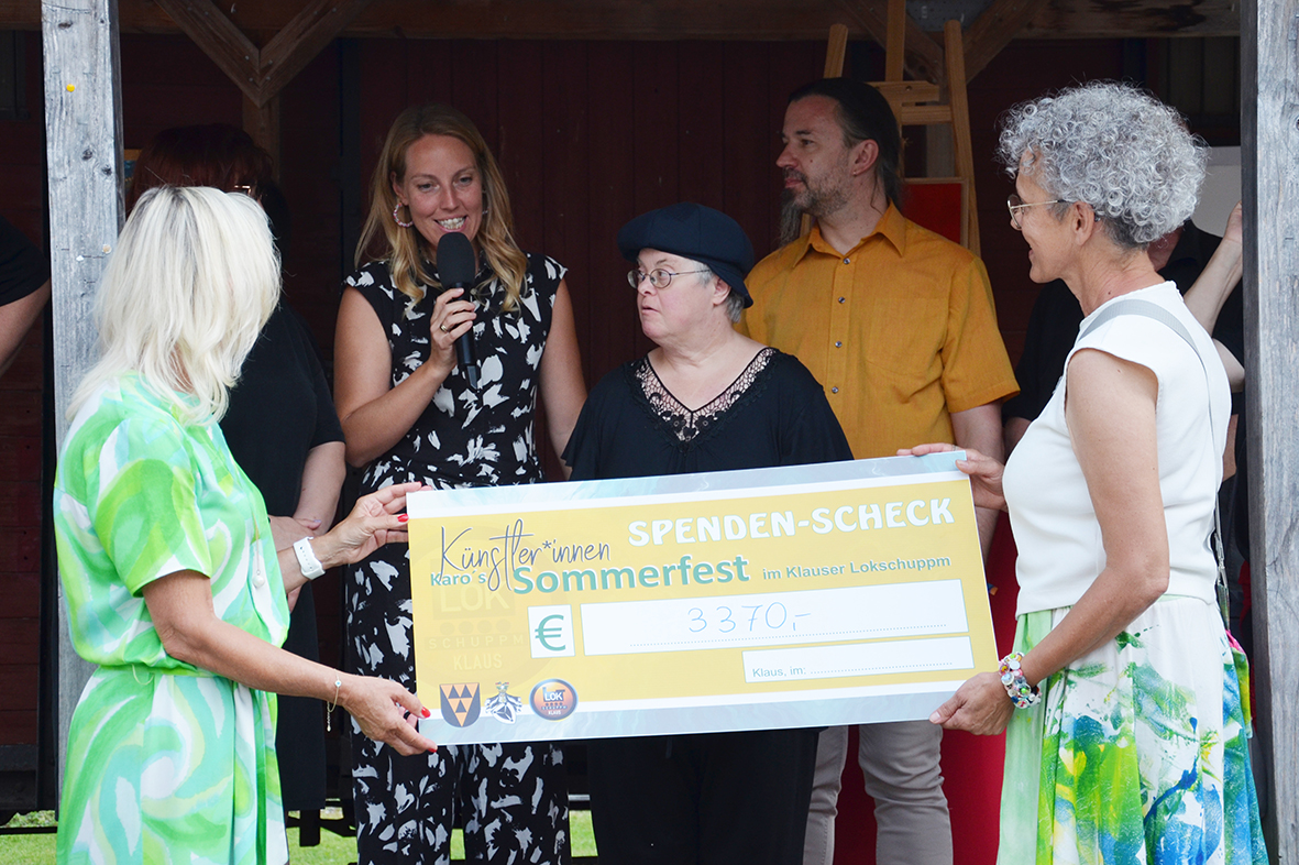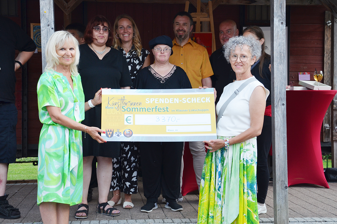 Das Künstler:innenfest in Klaus ist als karitative Veranstaltung konzipiert, die den Fokus darauf legt, dass Kunst auch in am Land sichtbar wird. Präsentiert wurden dabei auch in diesem Jahr Künstler:innen aus der Region und darüber hinaus. Auch die derzeit in Schön in einem Artist in Residence Projekt mit Schön Kund:innen arbeitende Künstlerin Christina Reichsthaler war beietiligt Die Häfte des Reinerlöses, der bei diesem Künstrel*innenfest vor allem durch eine tolle Kunst-Tombola erzielt wurde, kam Schön zugute, wofür sich Julia Hackl für alle "Schönerinnen und Schöner" ganz herzlich bedankte.