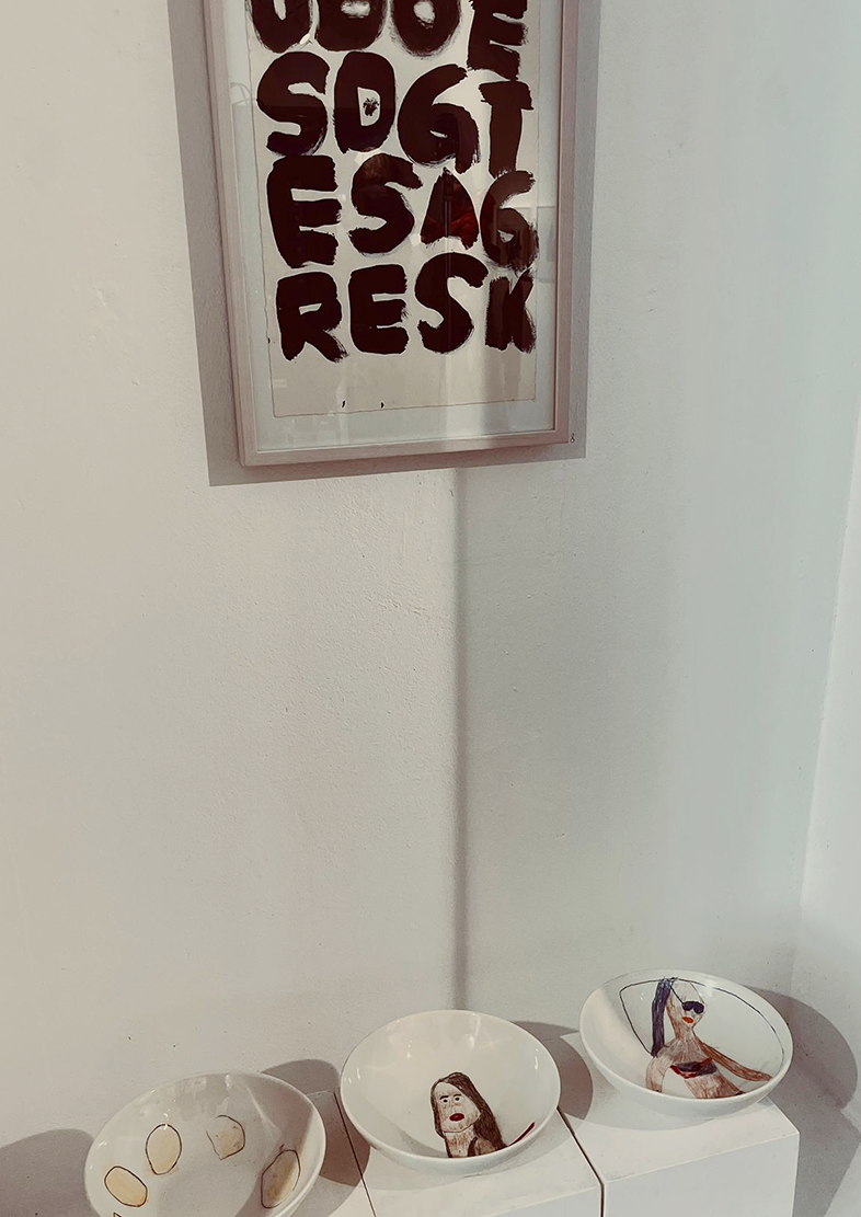 Neben Bildern und Objekten war zur Ausstellungseröffnung auch das in zwei Workshops mit unbegleiteten minderjährigen, nach Österreich geflüchteten Burschen gebaute Mobiliar nach Entwürfen des italienischen Designers Enzo Mari zu bewundern, auf dem ein köstliches Buffet aufgebaut war.