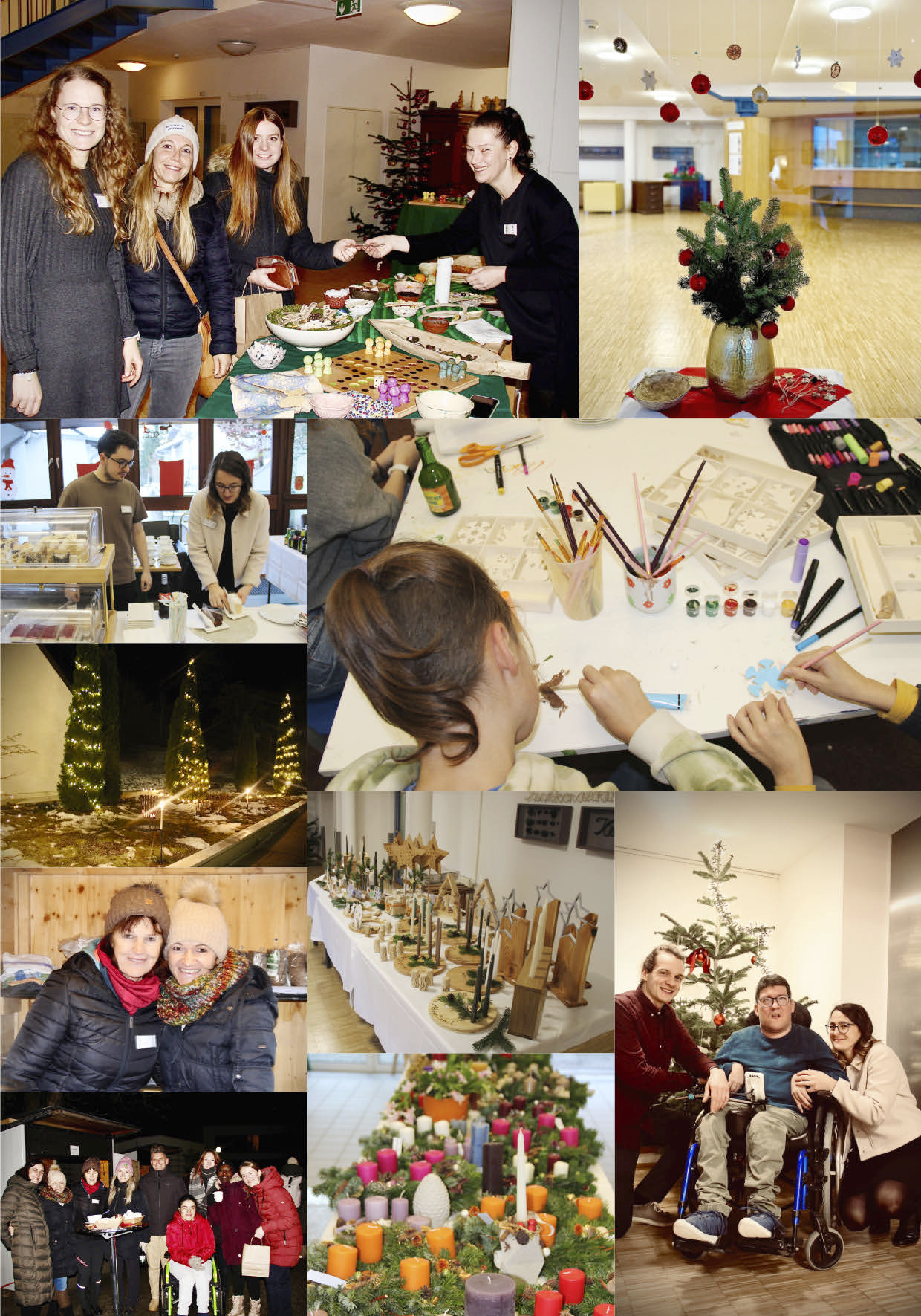 Am 28. November war in Schön alles auf Beinen und Rädern unterwegs – der traditionelle Adventmarkt ist eines der Highlights im Jahreskreis und alle sind mit dabei! Schon während vieler Wochen davor werden in unseren Werkstätten die unterschiedlichsten Produkte für den Verkauf hergestellt. In dieser Zeit ist jedes Jahr die Vorfreude zu spüren, da knistert und duftet es! Jedes Stück wird hier in Handarbeit und mit großer Konzentration gefertigt, ob in der Holz- oder der Tonwerkstatt, oder in der "Grünen", wo adventliche Gestecke und wunderschöne Adventkränze gebunden werden.